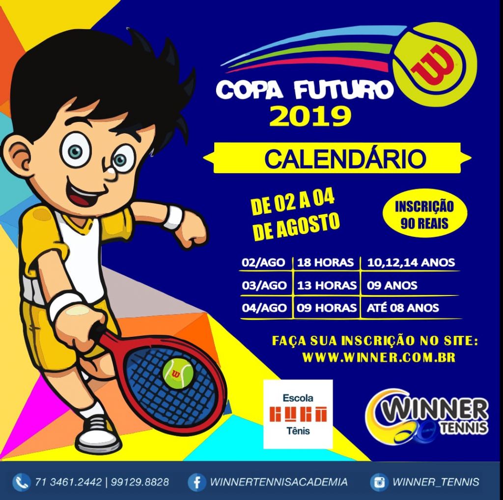 A 3a. etapa da copa Futuro, torneio que reúne a garotada de 5 a 14 anos, será disputada entre os dia 2 e 4 de agosto, nas quadras de terra da Winner Tennis, em Pituaçu.